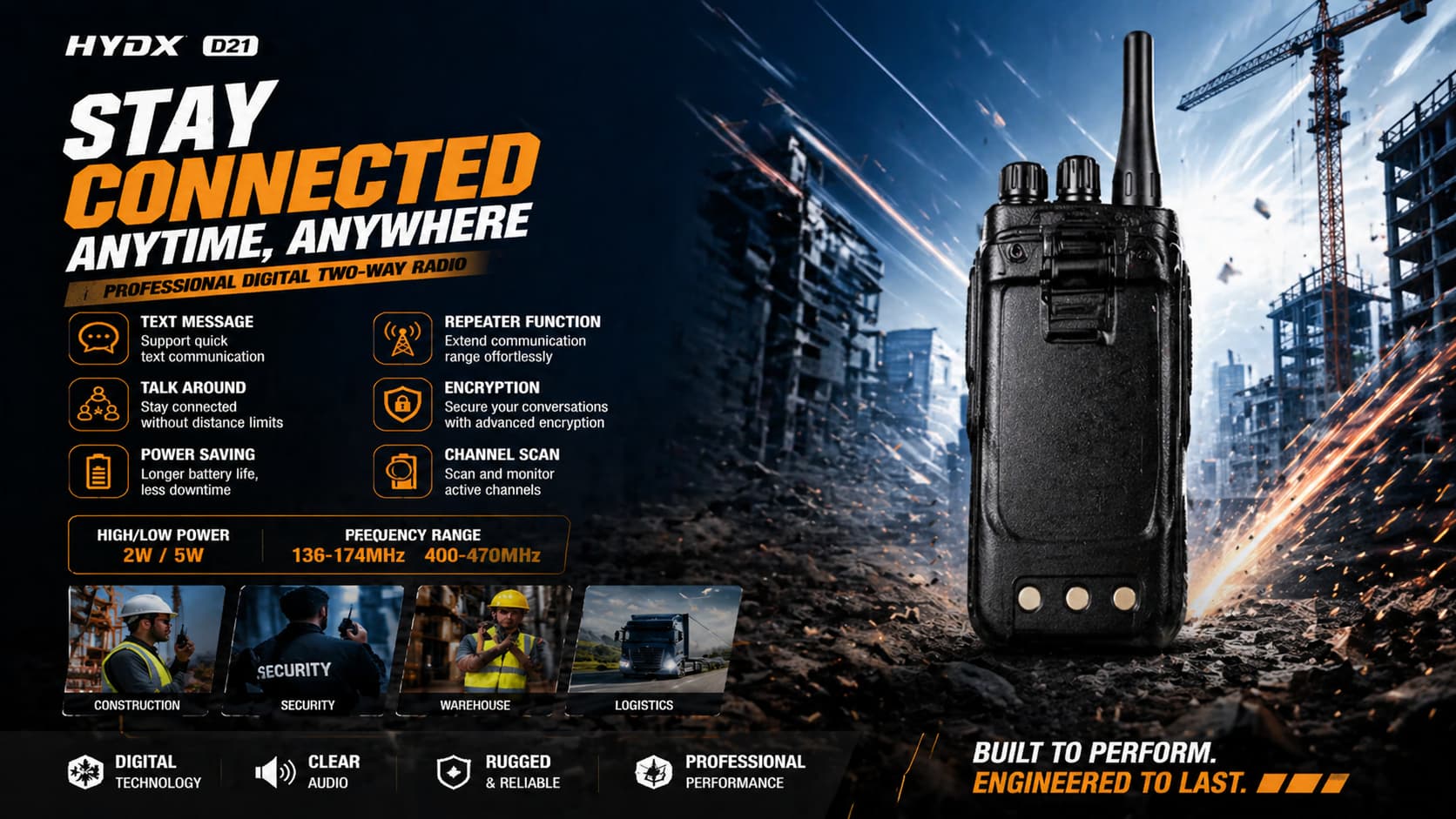 The first step in selecting the right two-way radio is understanding your specific communication needs. If your team operates in a small, confined space like a warehouse, a simple analog radio may suffice. However, if your team is spread out over large outdoor areas, such as in construction or logistics, you’ll need a digital radio with extended range and clearer communication.